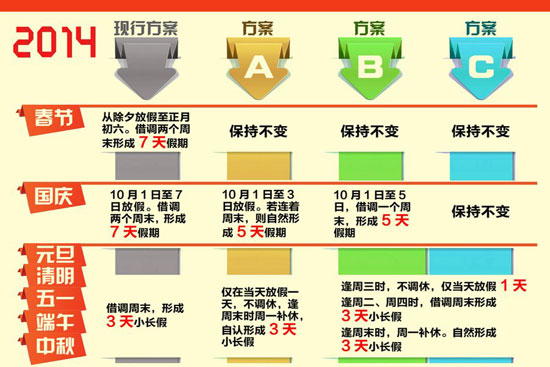 假日辦征求對假期意見,三種方案拿出來征求民意,用哪個都會招來吐沫。其實這也不是眾口難調(diào),而是管得太寬。一年放多少假,怎么個放法,把公務(wù)員給規(guī)定好了就結(jié)了。至于一般群眾想怎么休息,讓大家自行決定不好嗎?有那個絞盡腦汁琢磨挪日子的精力,真不如好好想想怎么落實勞動法,讓大家能踏實休息,踏實帶薪休假,踏實每周40小時工作制。瞧瞧古今中外,哪個國家、哪個朝代,有為放假這么嘬牙花子的么?